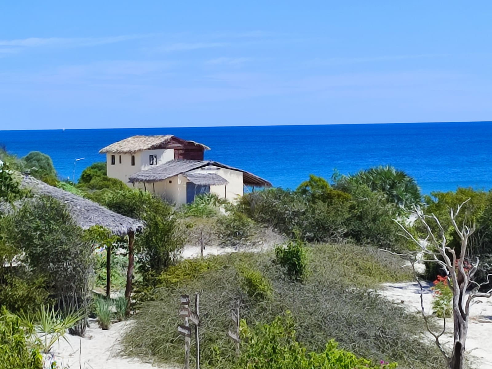 Notre écolodge niché dans les dunes à la végétation luxuriante offre une vue exceptionnelle sur le canal du Mozambique